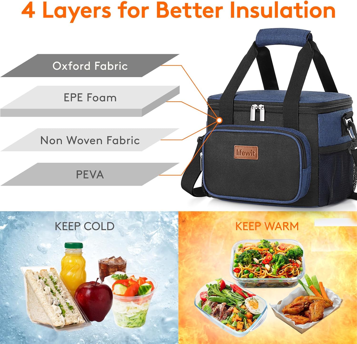 - Leakproof & Waterproof: The exterior of lunch box for men is constructed out of 600D water-resistant dirt-proof Oxford fabric for durability and water proofing and easy cleaning. Even when full with water and ice, it holds fruits and drinks well, will not leak at all.