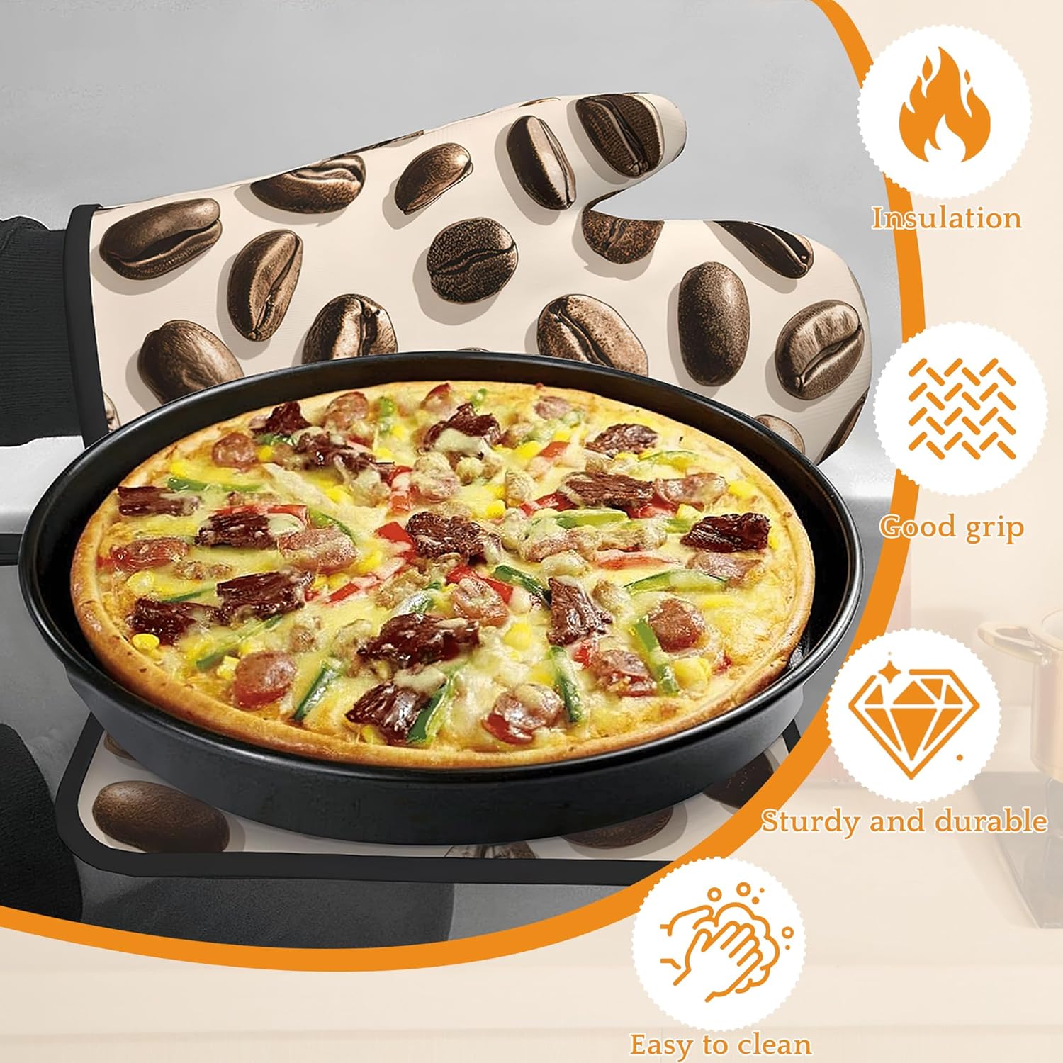 Coffee Bean Oven Mitts and Pot Holders Set,Kitchen Oven Gloves and Pot Holder with Heat Resistant Non Slip for Cooking Baking Grilling(4 Piece Set)