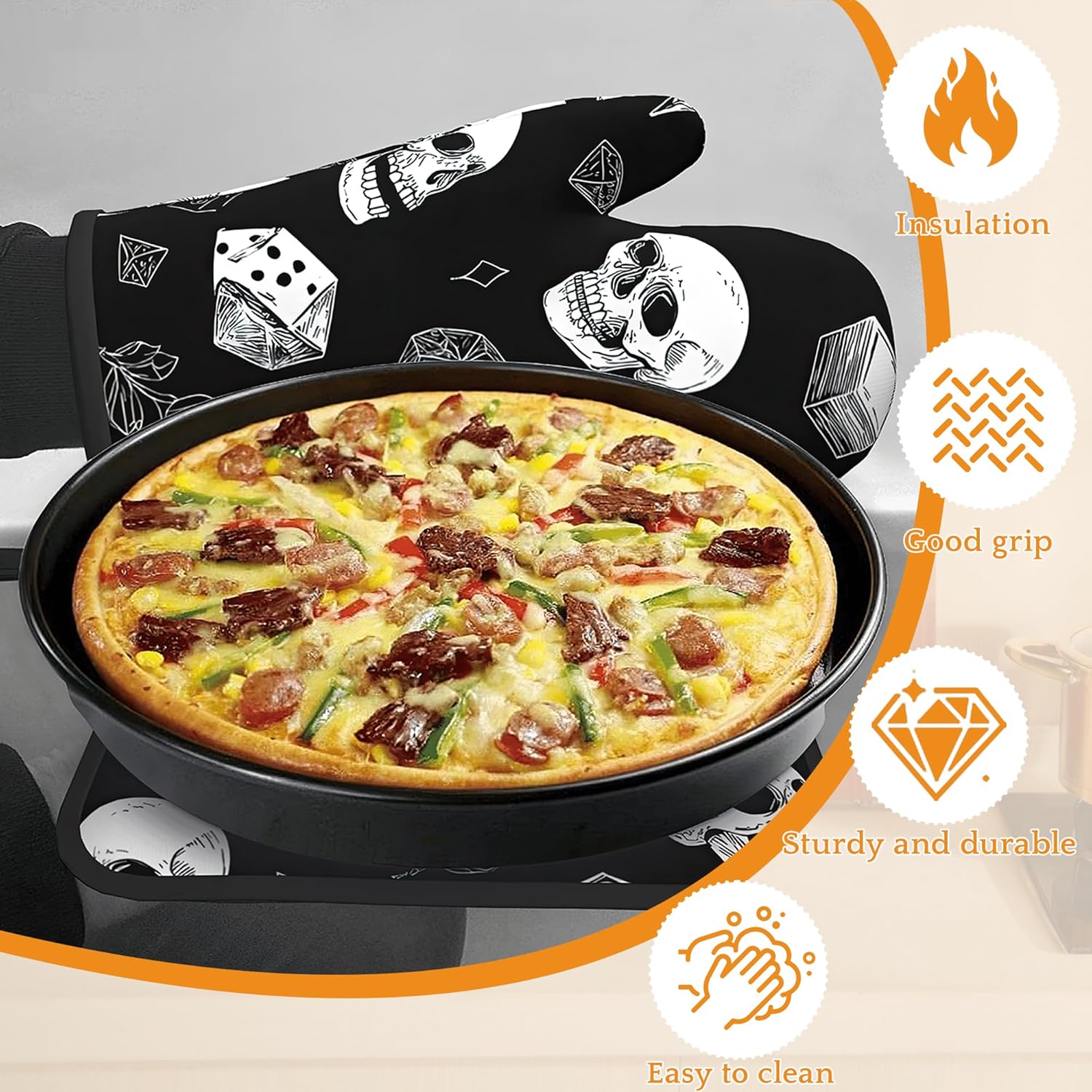 Skull Head Oven Mitts and Pot Holders, Rose Heat Resistant Oven Mitts Gloves and Pot Holder for Home Kitchen Decorations Cooking Baking BBQ Gifts,Set of 4