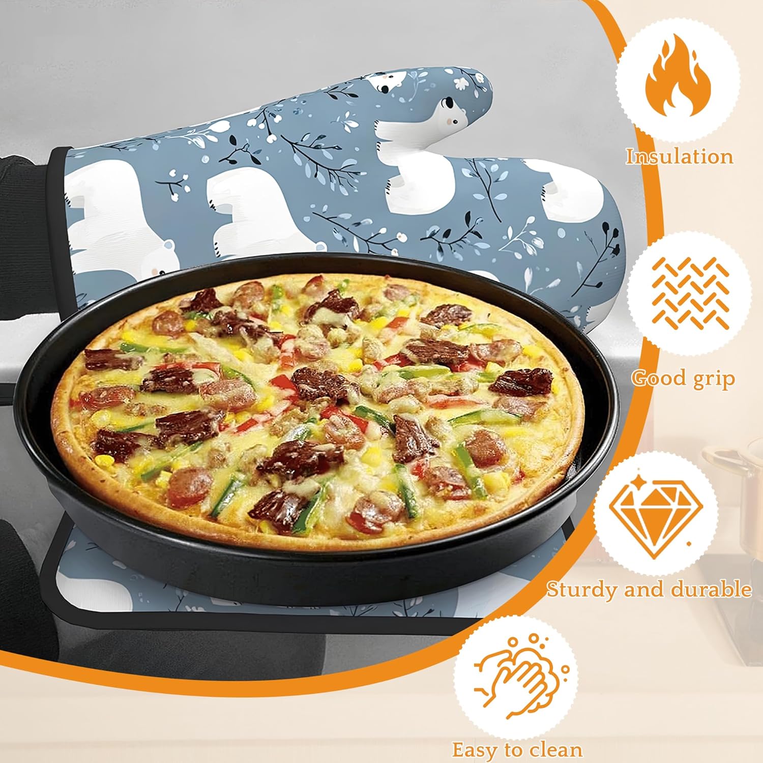 Cute Polar Bear Oven Mitts and Pot Holders,Winter Heat Resistant Oven Mitts Gloves and Pot Holder for Home Kitchen Decorations Cooking Baking BBQ Gifts,Set of 4