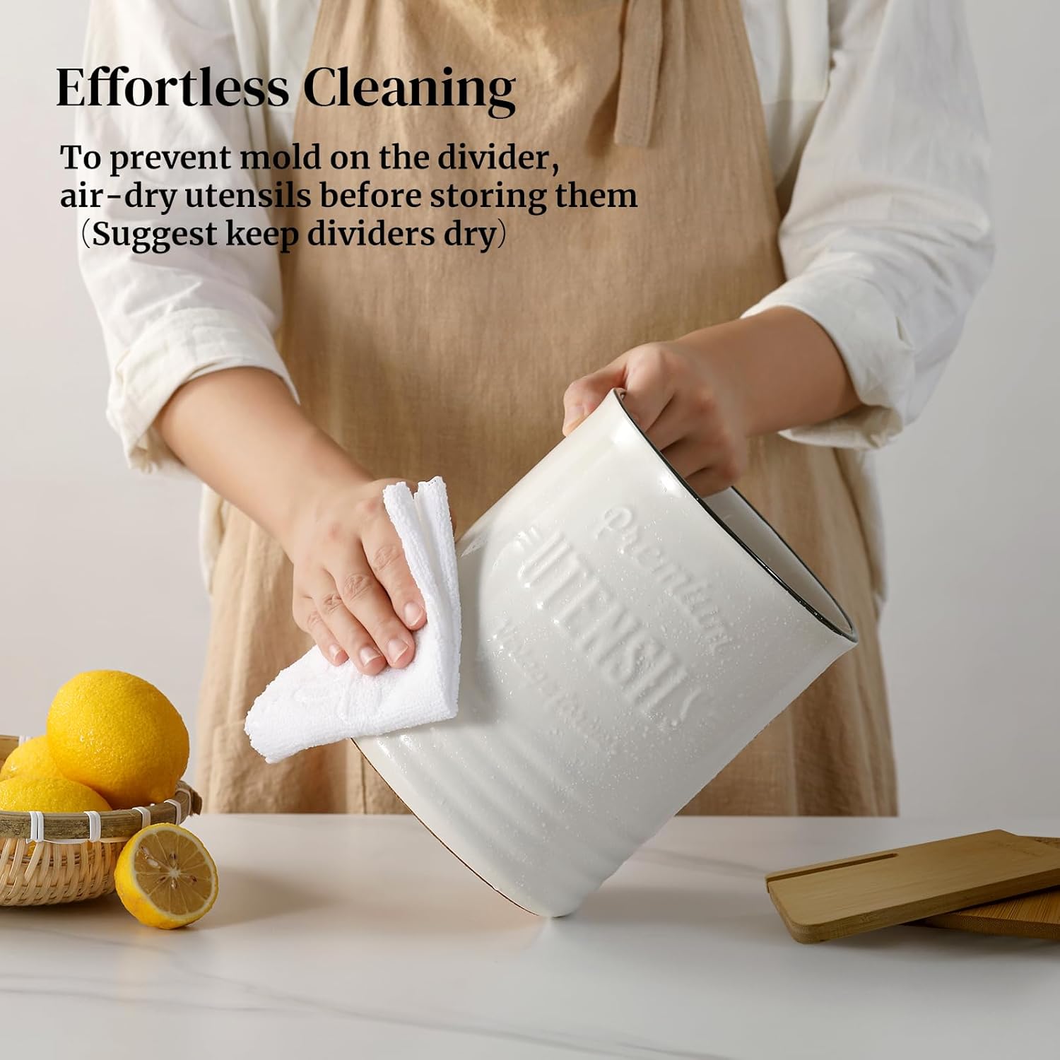 - Countertop Protection Cork Mat: Designed with a soft cork mat, this white ceramic utensil crock protects your countertops from everyday scratches and scuffs, blending practicality with a touch of rustic warmth