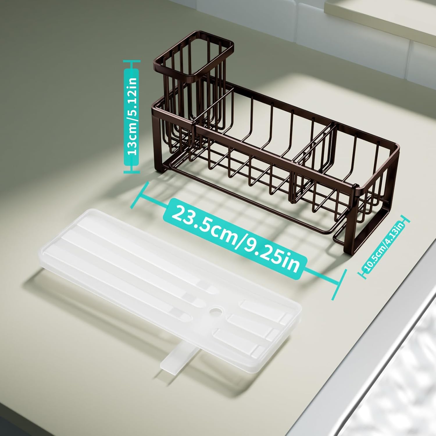 - [Reasonable Size & Support]: The size of our sink organizer is 9.25*4.13*5.12 inches. Our sponge caddy for kitchen sink can meet your daily needs well. If you are not satisfied with this sink caddy kitchen sink organizer, please reach out to us
