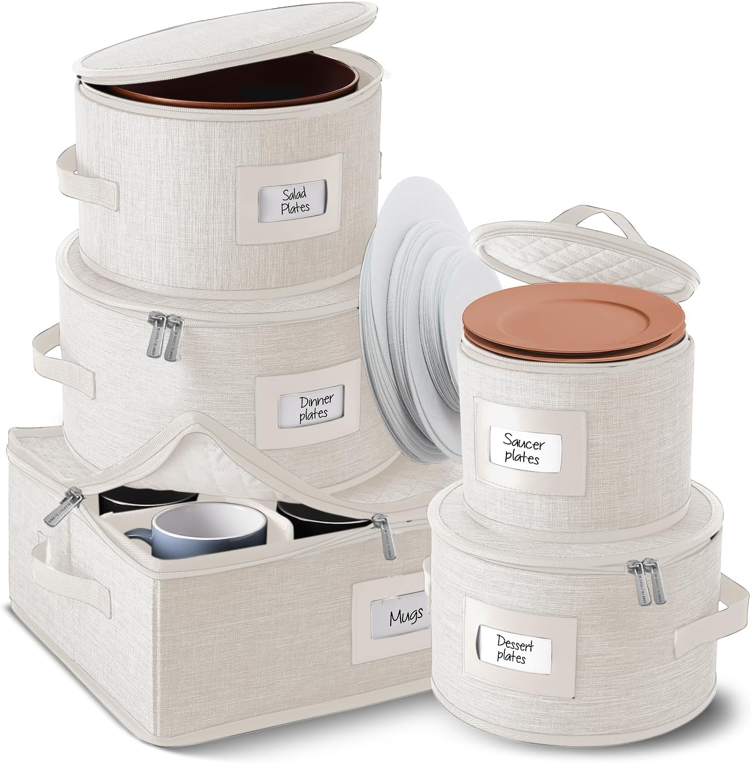- Fine China Storage Containers: Protect your china dinnerware from dust, chips, scratches, or accidental impacts. Our dish storage containers fit plates and cups for up to 12 people.