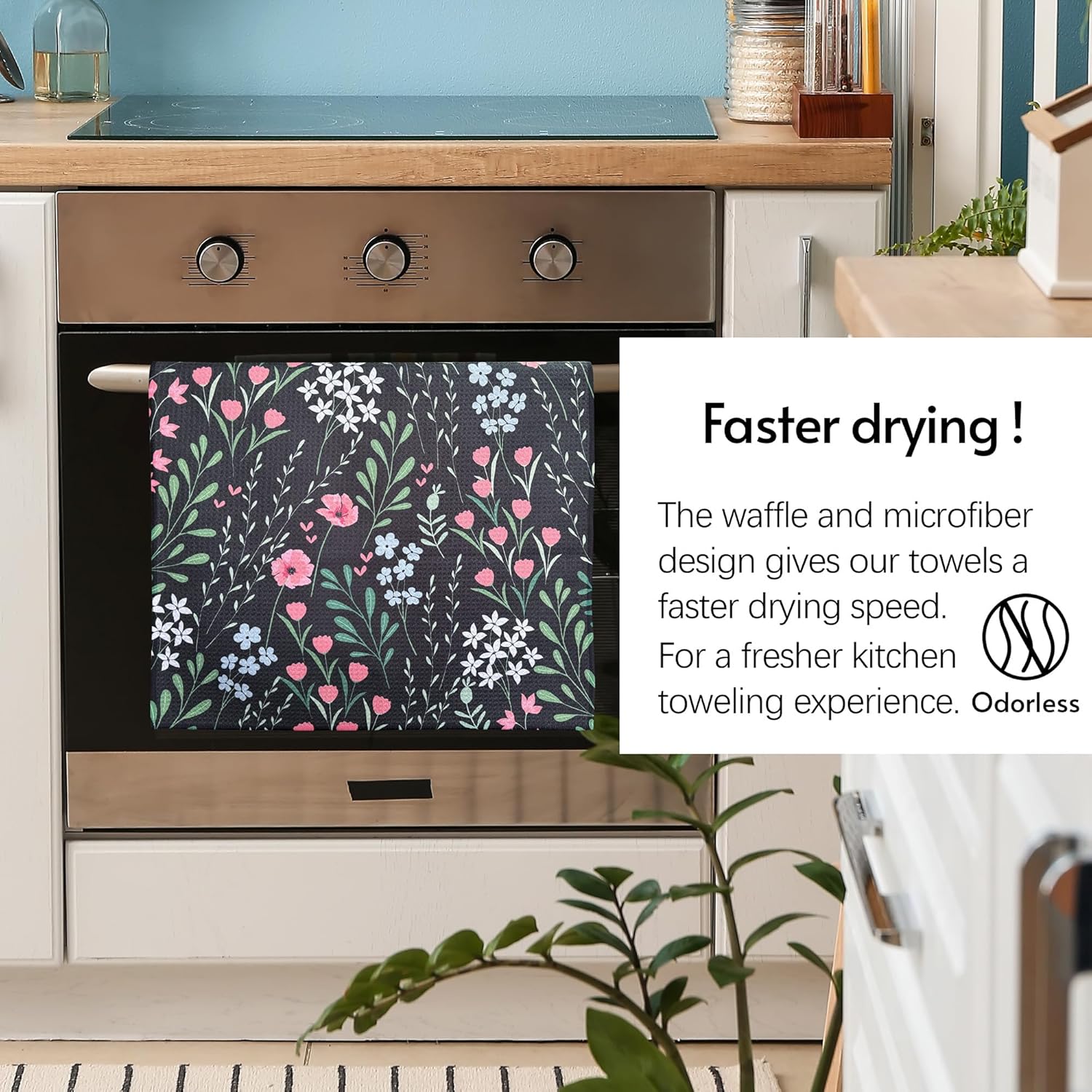Kitchen Towels, 18" x 30" Dish Towels for Kitchen Drying, Quick Dry Tea Towels, Premium Microfiber Dish Cloths, Midnight Bloom Series, 2-Pack
