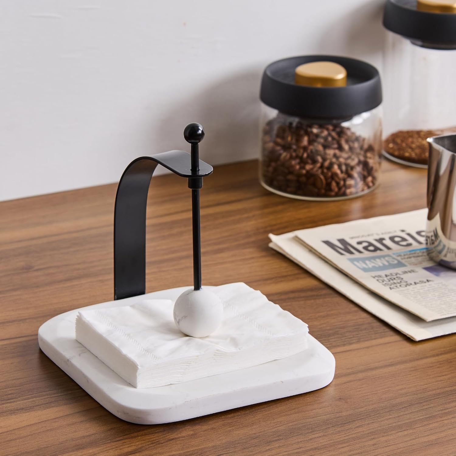 White Marble Napkin Holder - Decorative Square Paper Napkin & Towel Holder for Kitchen, Restaurant, Bathroom - Durable Resin Table Organizer - Stylish Home Gift