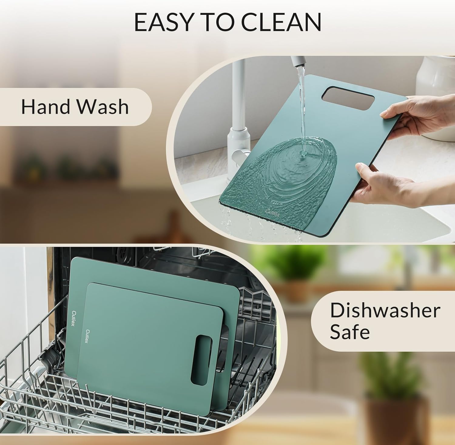 - EASY TO CLEAN & DISHWASHER SAFE: Most residues rinse off easily with water and a gentle wipe. For added convenience, these cutting boards are also dishwasher safe.