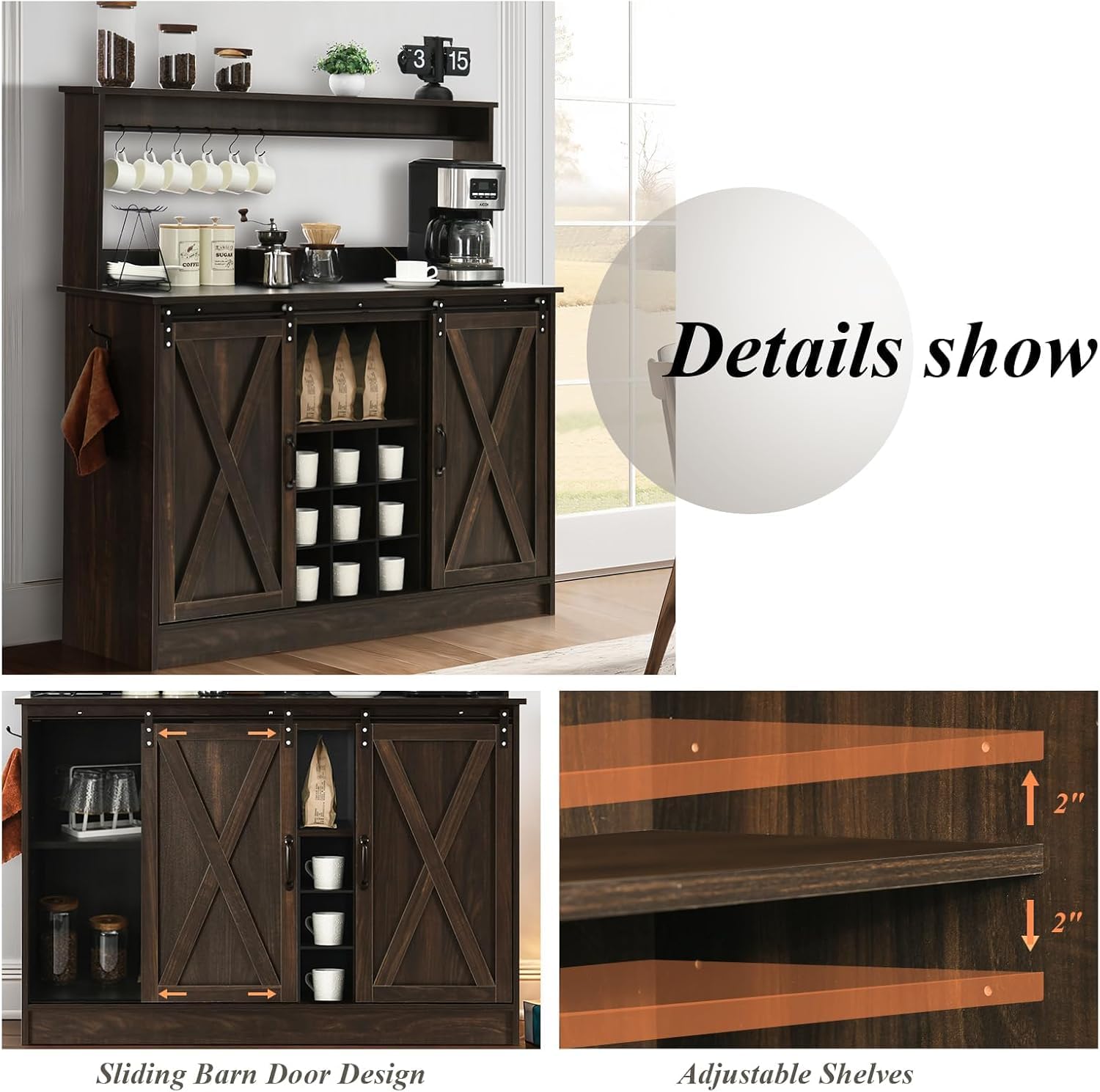 - HIGH QUALITY AND EASY TO CLEAN: This Farmhouse Coffee Bar Cabinet with Storage is made of high quality wood and the high quality lacquered metal rods allow the barn doors to slide easily and flexibly