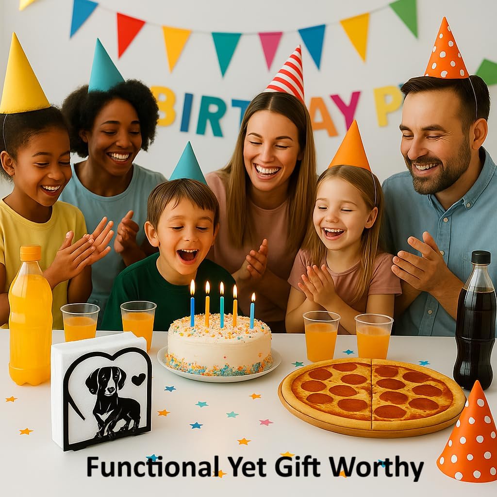 - Perfect for Pet Lovers – Showcase your love for cats and dogs with this charming napkin holder set, featuring a heartwarming dachshund and a garden kitty design.