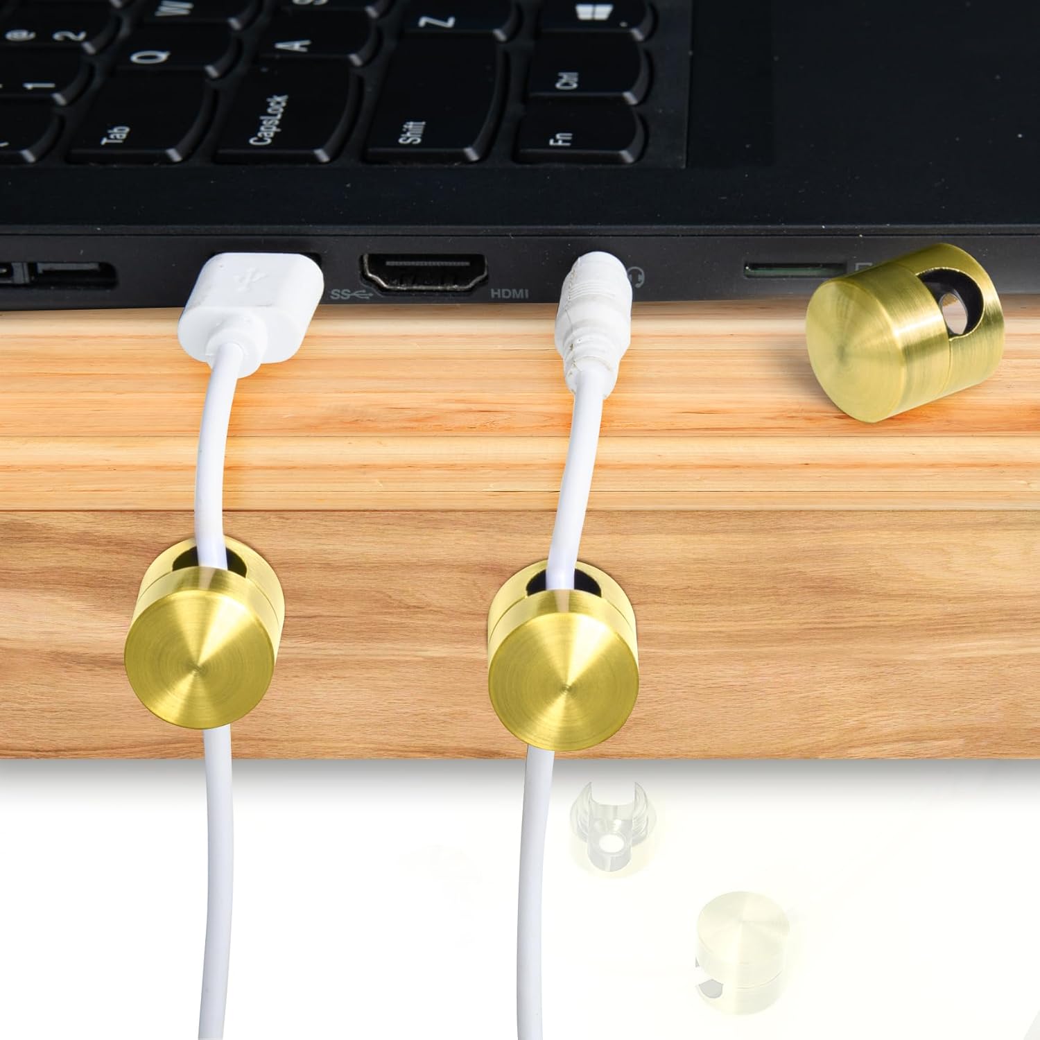 - Easy to Use: The package includes 4 stickers for using. You just need to clean the surface that you are going to attach the cord anchor to, then stick the gold cord holder on the surface with glue stickers, and thread the cable from the hole to keep it organized