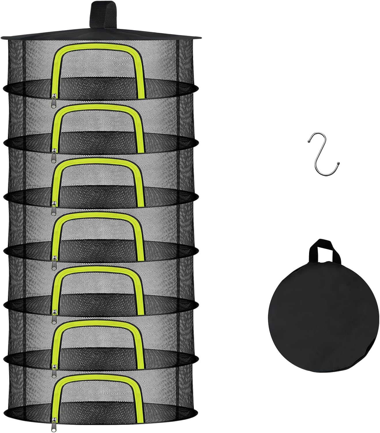 7 Layer Herb Drying Rack, Herb Drying Rack Hanging Mesh, Foldable Bud Drying Net with U-Shaped Zipper, Hooks, for Drying Herbs Plants, Flowers, Fruits, Food, Camping (7 Layers-23.62'')
