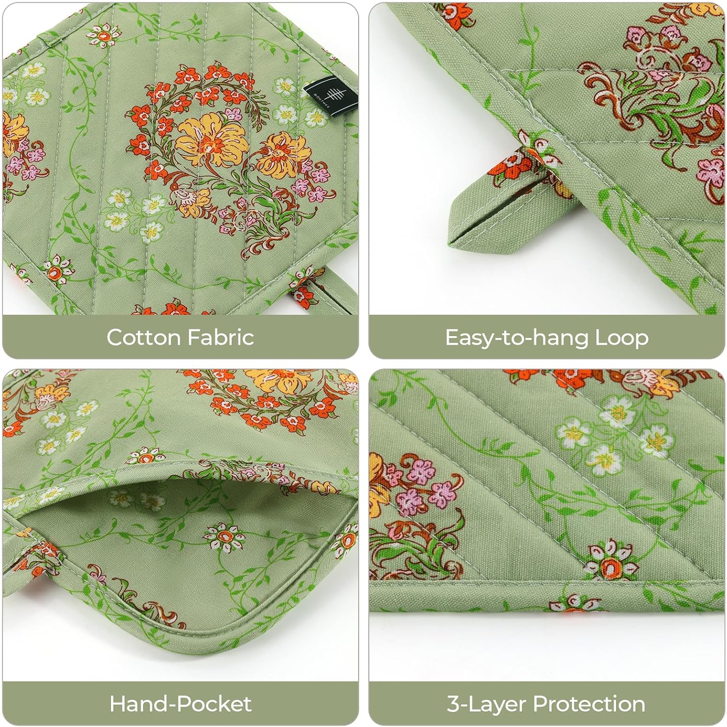 Pot Holders for Kitchen Heat Resistant Hot Pads for Countertops Oven Pot Holders Cotton Potholders for Kitchen Cooking Baking (Sweet Flowers)