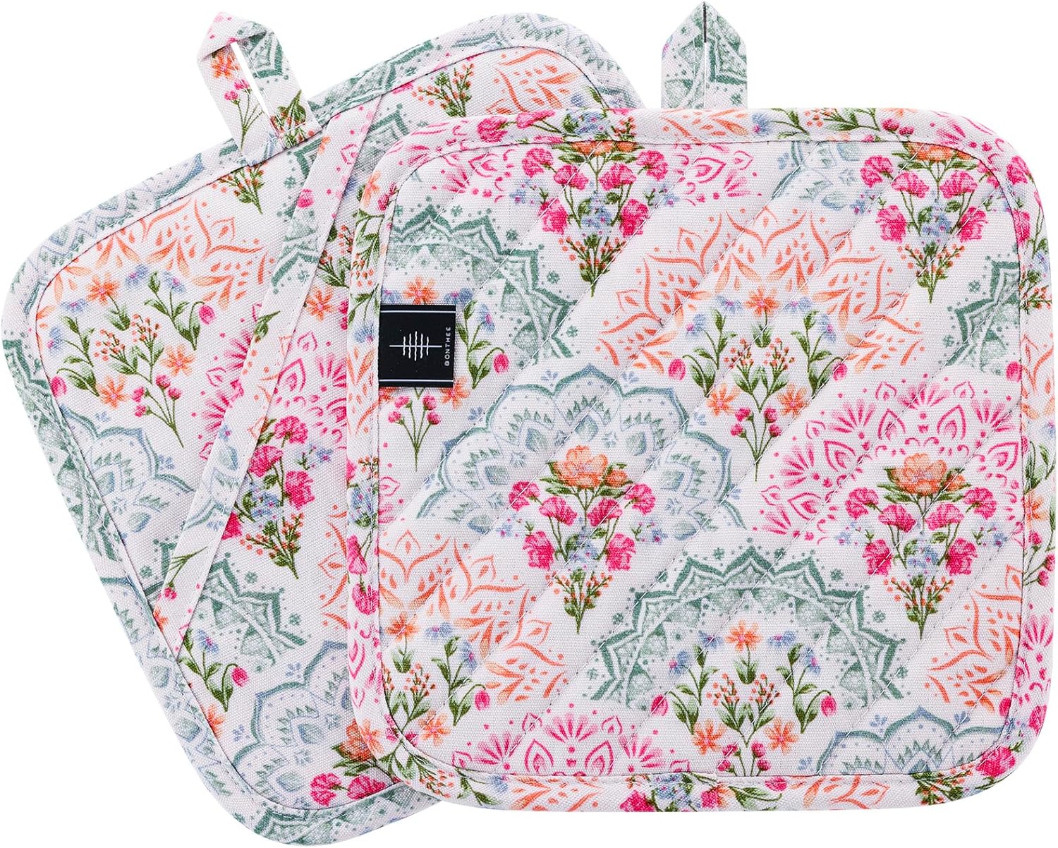 Pot Holders for Kitchen Heat Resistant Hot Pads for Countertops Oven Pot Holders Cotton Potholders for Kitchen Cooking Baking (Mandala)