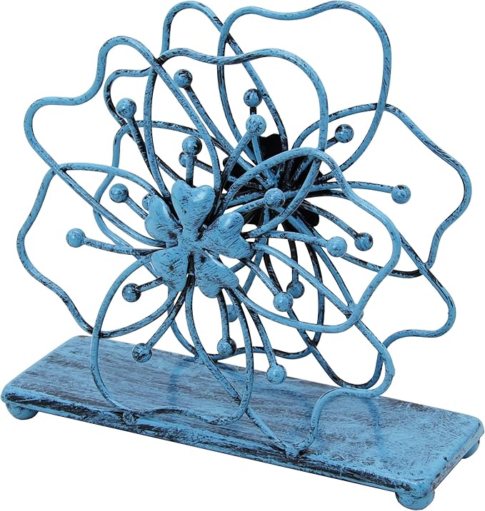- 【Simple & Stable】: The metal napkin holder has a turquoise surface and a simple flower design.
