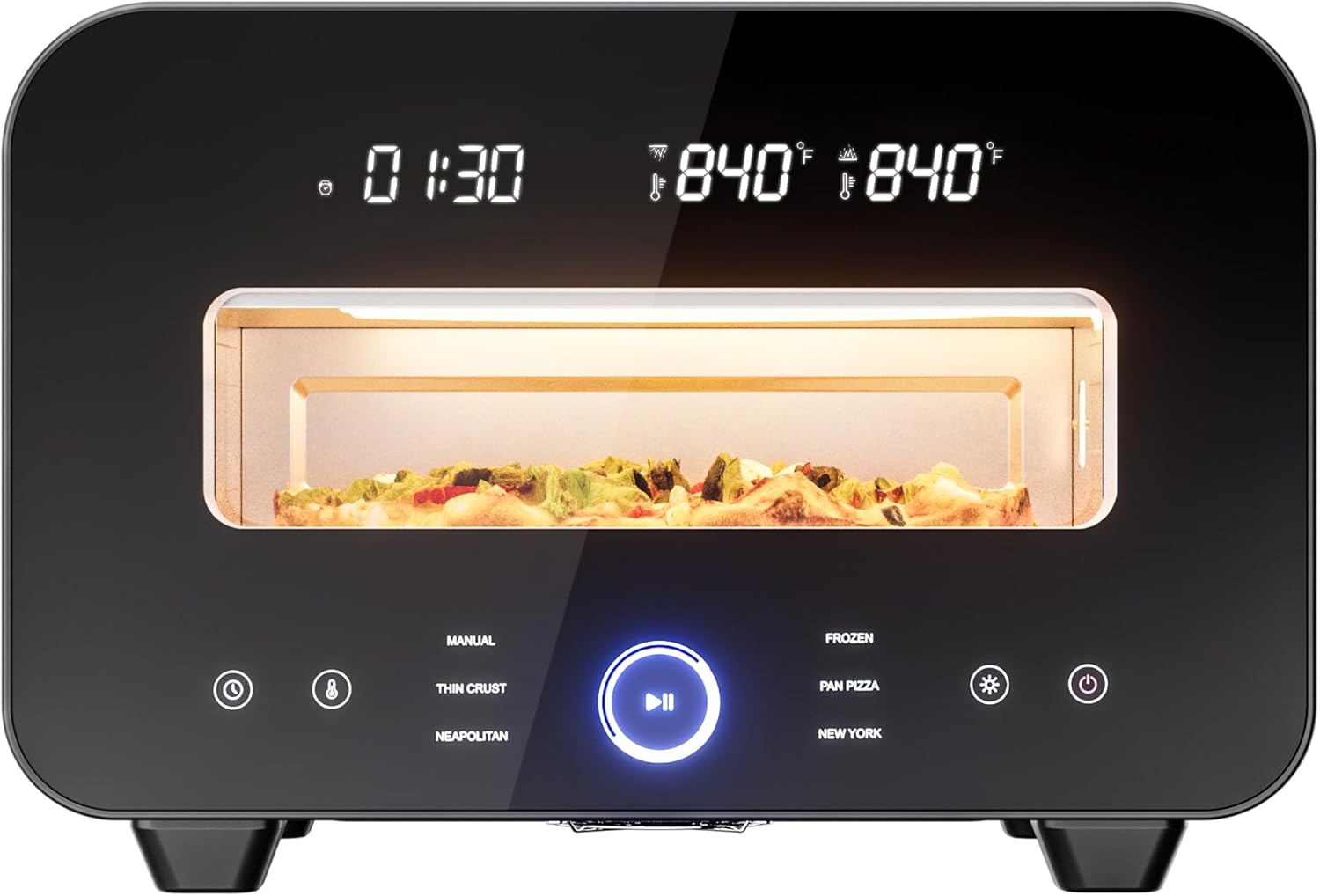 - 【Compact Countertop Design】18.5" x 15.7" footprint fits apartment kitchens while delivering commercial-grade performance. Beyond 90-second pizzas, expertly handles steaks, wings, cookies, and 20+ dishes using rapid 840°F searing technology.