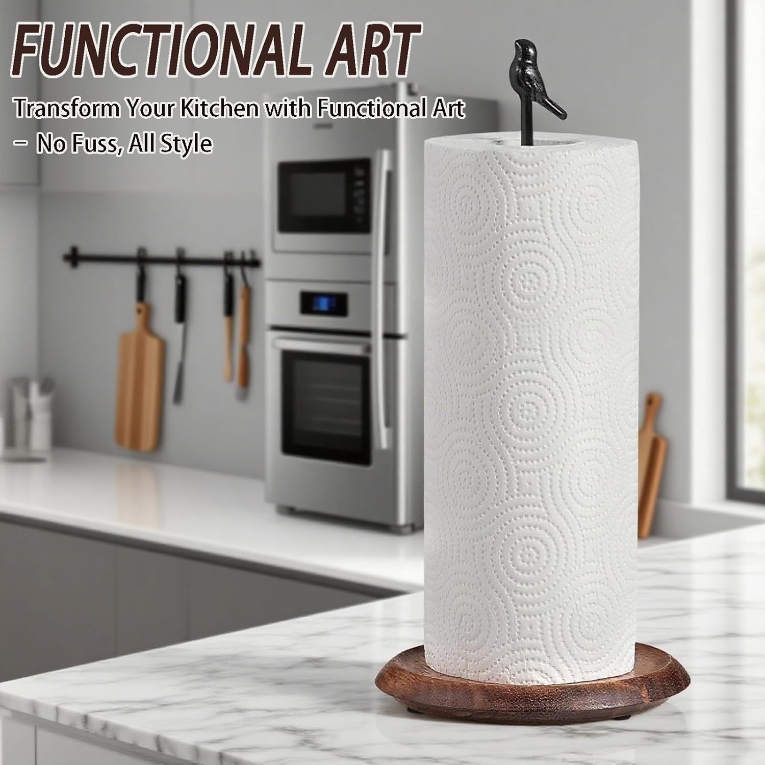 - Premium Material Combination: This paper towel holder is constructed from durable iron, ensuring a stable structure. The base is crafted from premium wood, adding a natural touch and providing excellent stability, making it easy to withstand frequent daily use.