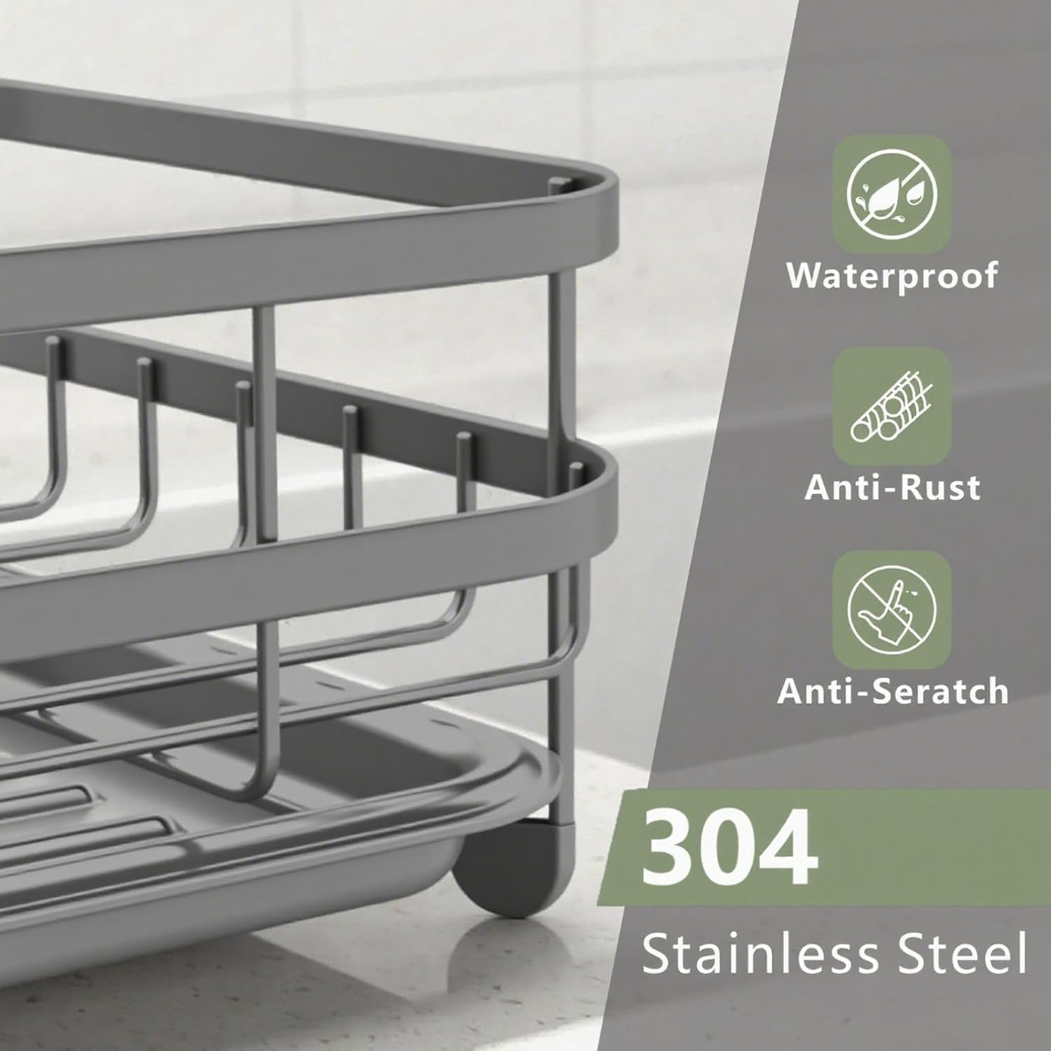 Dish Drying Rack Stainless Steel Drying Racks for Kitchen Counter Large Capacity Storage Racks with Drainboard Curlery Holder Gray