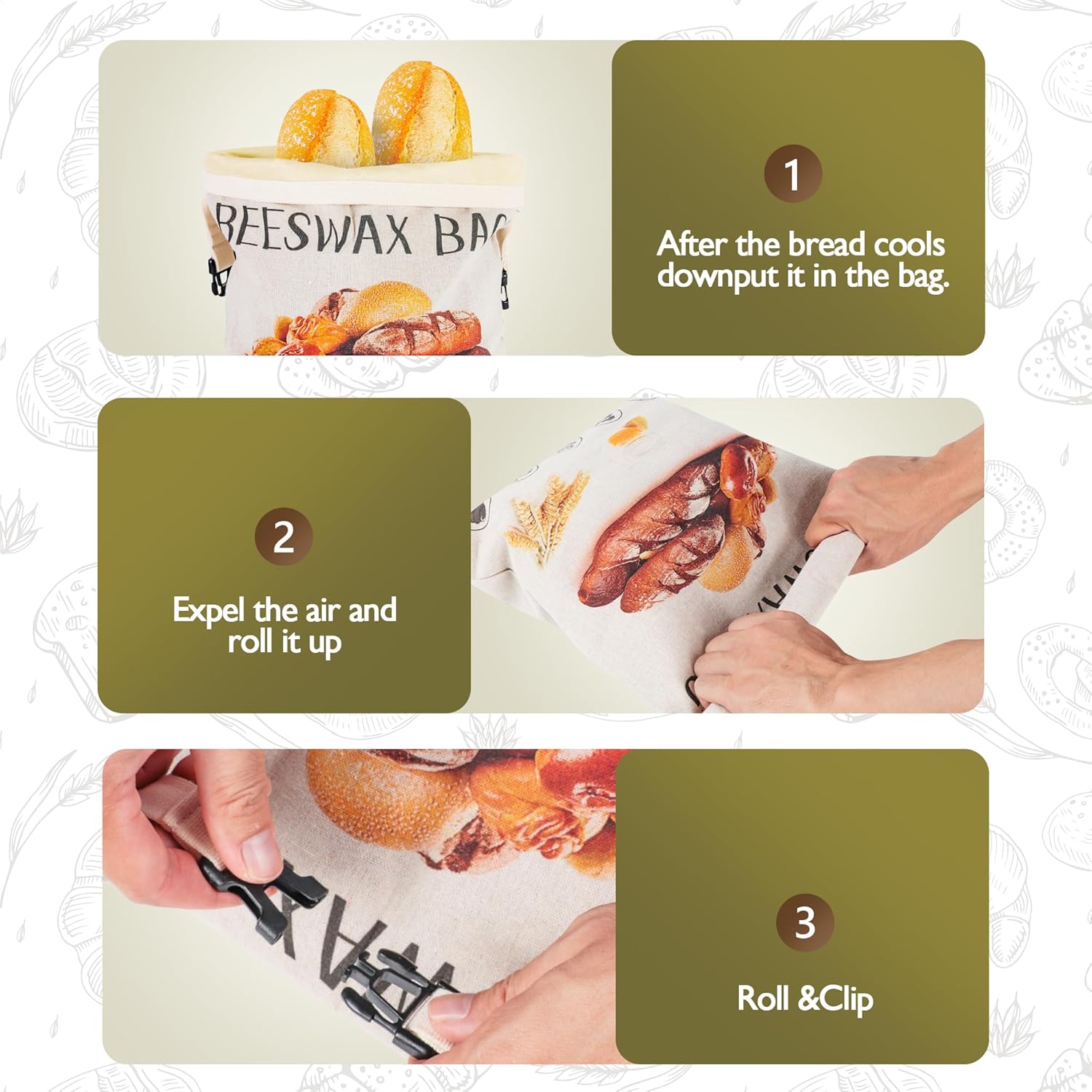 - Stylish & Practical Bread Bags - Elegant Design with Secure Closure Featuring a modern, elegant print and secure closure, these homemade bread storage bags add a touch of sophistication to your kitchen. Lightweight and space-saving, they are perfect for neatly storing bread without taking up counter space. A great choice for anyone who loves fresh, preservative - free baked goods, making them an attractive addition to any kitchen, much like a stylish bread bag.