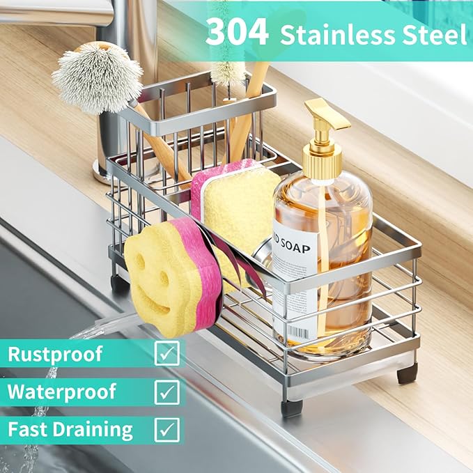 - [Durable Stainless Steel]: Constructed of 304 stainless steel, Hapirm kitchen sink caddy can effectively prevent rust even in wet conditions and has a long service life. Enjoy reliable storage with our dish sponge holder