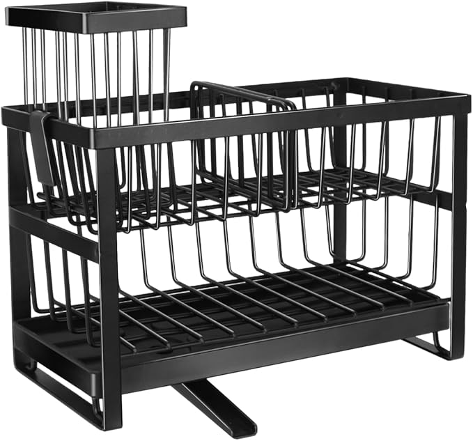 - Maximize countertop space with this over the sink dish drying rack, featuring a self-draining design to prevent water buildup. Perfect for home essentials and apartment decor, it combines functionality with sleek home improvement