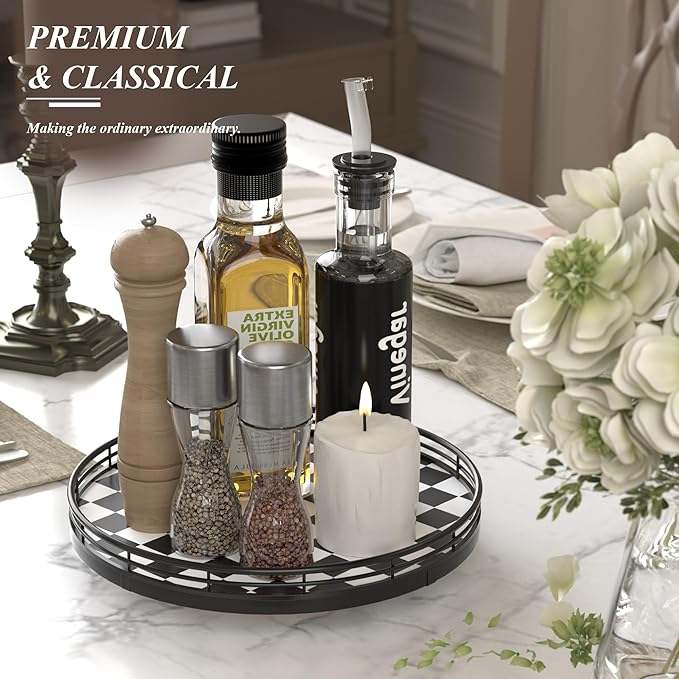 - QUALITY CRAFTSMANSHIP & STYLE – Built with a durable checkered oakwood base and iron frame. From a black check serving tray to a cute lazy susan for table top, it blends seamlessly with modern pottery barn decor styles.