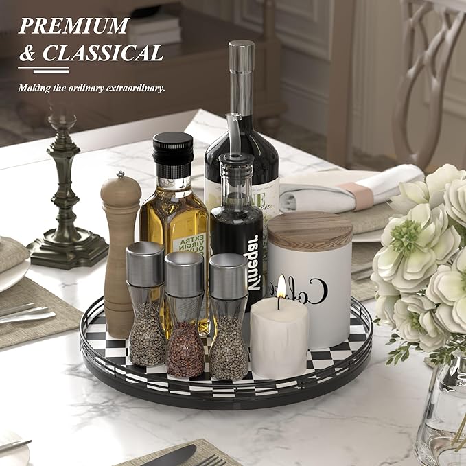 - QUALITY CRAFTSMANSHIP & STYLE – Built with a durable checkered oakwood base and iron frame. From a black check serving tray to a cute lazy susan for table top, it blends seamlessly with modern pottery barn decor styles.