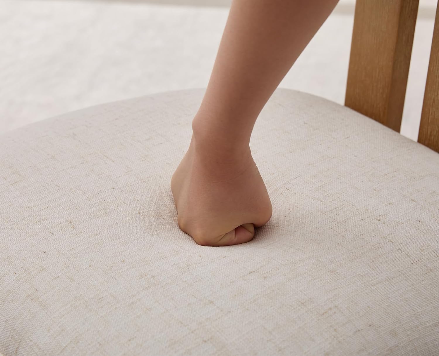 chairus Linen Dining Chairs Set of 4 Modern Farmhouse Kitchen Chairs with Open Low Back Upholstered Wood Side Chairs for Dining Room, Restaurant, Living Room, White