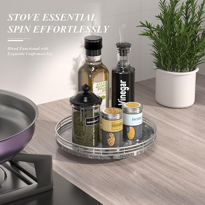 - SMOOTH 360° ROTAION FOR EASY SERVING – This stone lazy Susan spins effortlessly, making it perfect for sharing food, drinks, or condiments. Ideal for use as a marble lazy Susan for table top during family dinners or parties.