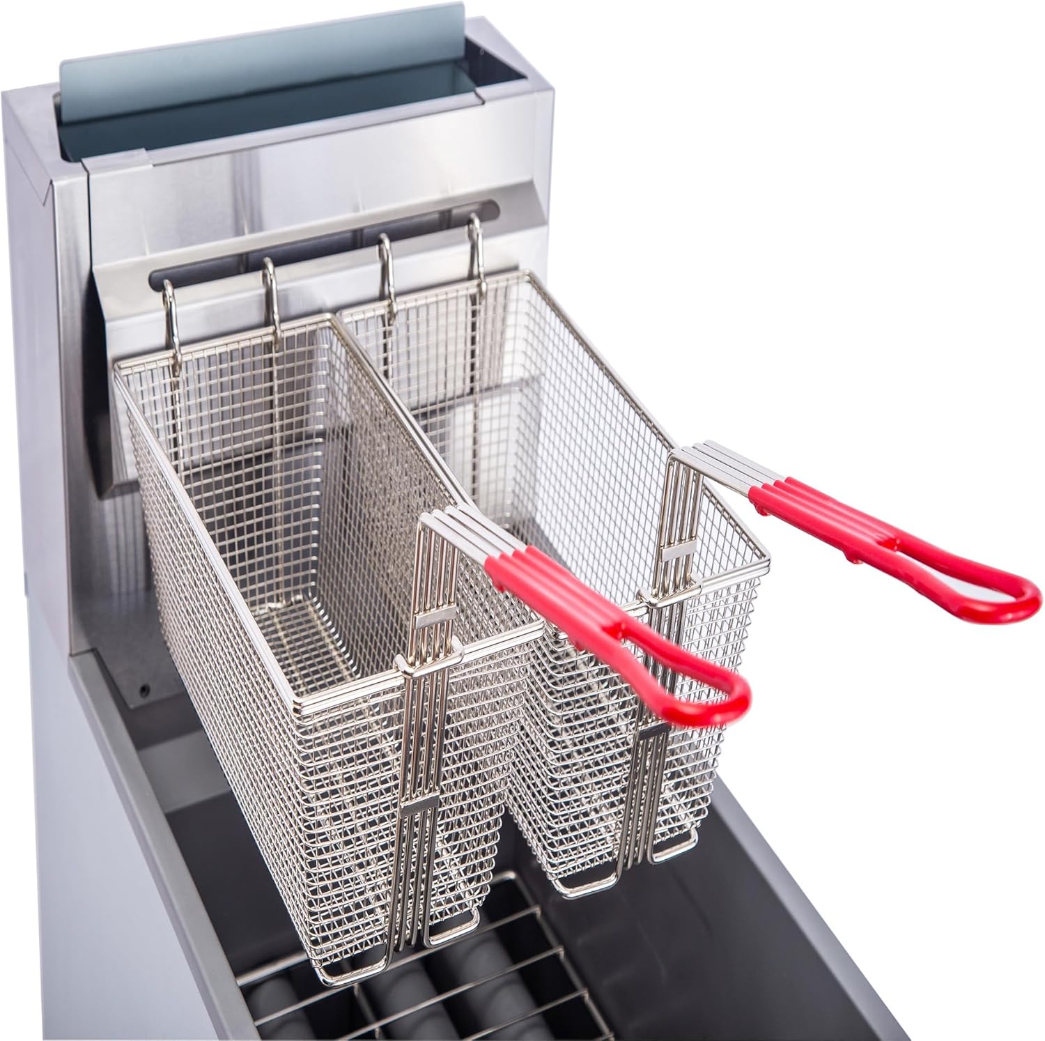 - Liquid Propane Operation - This industrial - grade deep fryer requires a liquid propane connection for operation. It is equipped with adjustable 6 - inch stainless - steel heavy - duty legs, enabling you to set the ideal working height. Comes with two nickel - plated fryer baskets and a handy fry basket hanger, which allows for easy drainage of excess oil and the ability to cook multiple foods simultaneously.