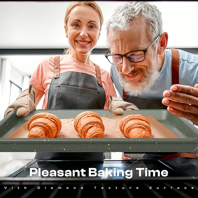- Carbon Steel Construction: Crafted from 57% thickened carbon steel for lasting durability, this baking pan set is PTFE, PFAS, and PFOA free. It resists warping at temperatures up to 428°F, ensuring perfect baking results every time