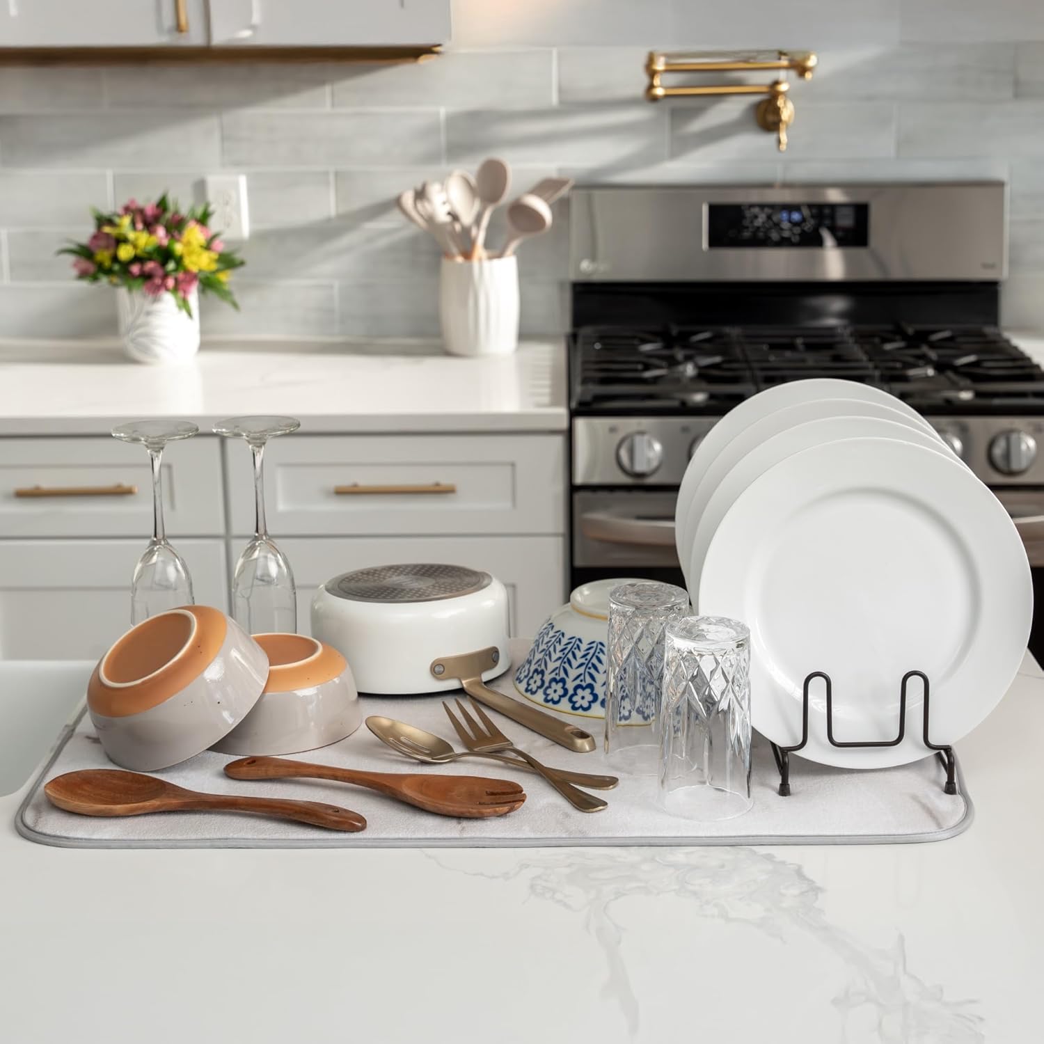 S&T INC. Dish Drying Mat Jumbo, 18” x 30”, Absorbent Microfiber Kitchen Counter Mat, Dish Drying Pad for Dishes, Utensils, Pots and Pans, Jumbo, Grey Stone