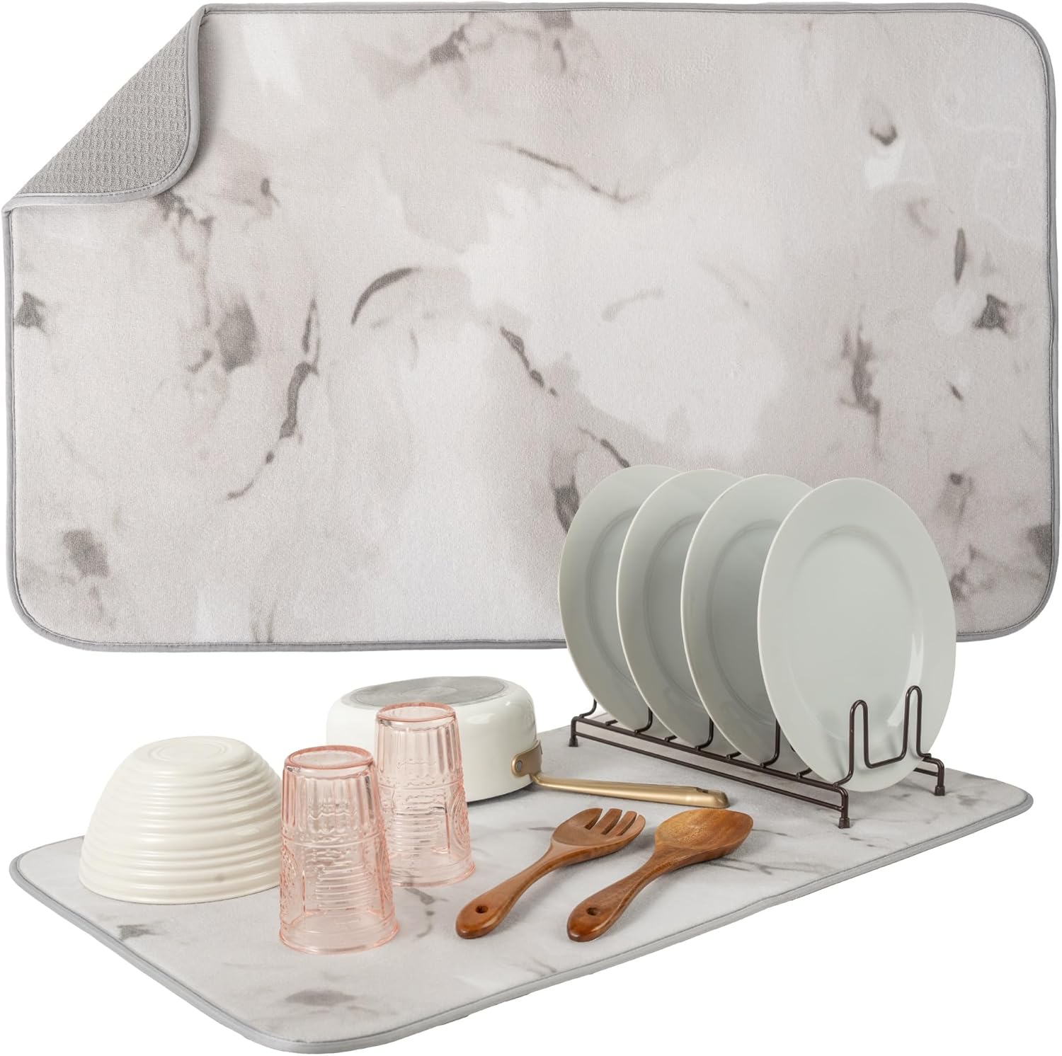 - Dish drying mats for kitchen counter are reusable, machine washable, and easy to store for kitchen organization; durable construction will not chip or break like a stone dish drying mat for kitchen