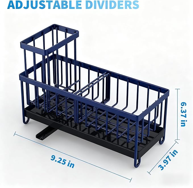 Cisily Navy Blue Sponge Holder Sponge Holder for Kitchen Sink, Sink Caddy Organizer with High Brush Holder, Kitchen Countertop Organizers and Storage Essentials