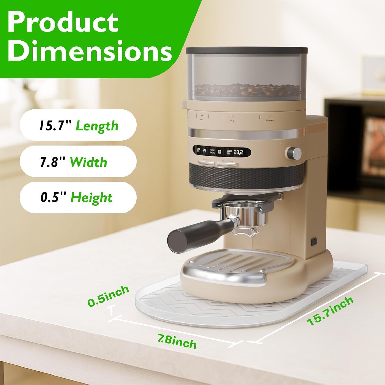 - Precise Arc Design for Perfect Fit:Tailored to match the curved base of most coffee machines, this silicone coffee mat fits snugly without slipping or shifting. It fully covers the contact area, preventing scratches on your countertop while keeping the coffee machine stable during use