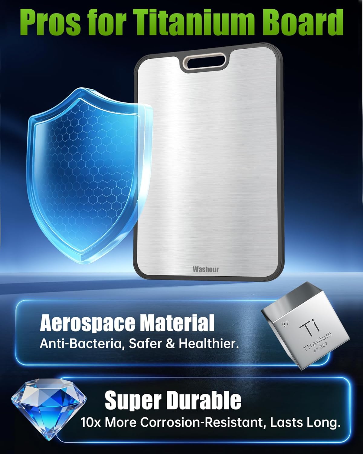 - Food-Safe Assurance: Certified for safety, odor-free. Elevated titanium edges lift the board from countertops, boosting hygiene