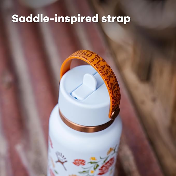 - OUT WEST: With a nod to leather tooling and botanicals found out West, the Out West collection brings a hint of western wear and ranch style to cold hydration. Featuring rose gold accents and floral designs on Hydro Flask’s iconic bottles and tumblers. The straps give a cool nod to saddle adornment.
