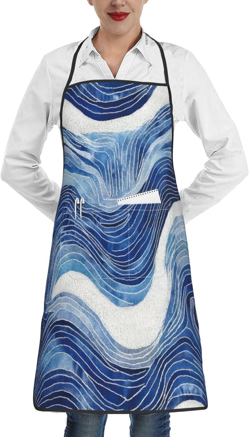 - Versatile Scenarios: Perfect for a wide range of activities including cooking delicious meals in the kitchen, hosting BBQs, baking treats, painting, gardening, and more. This blue and white wave abstract pattern chef apron is a great choice for both home cooks and those who love to entertain
