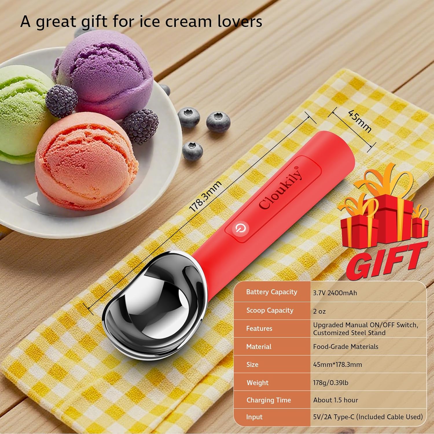 - 【Effortlessly Scoop Rock-Hard Ice Cream in Seconds】Simply grip the heated ice cream scoop rechargeable, letting the scoop to an ideal temperature. Glide through frozen-solid ice cream, gelato, or yogurt straight from the freezer for perfect, round scoops every time—no more waiting for it to thaw or struggling with a bent spoon.