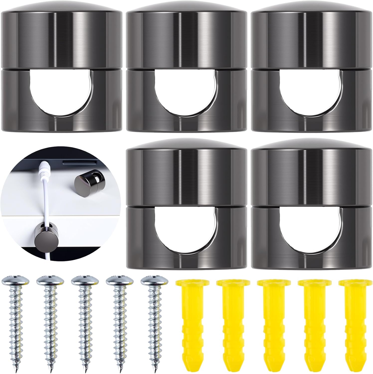 - Package Included and Size: You will receive 5 sets of black cable anchor holders for cords, enough for your daily use. The size of each cord holder is 0.67 x 0.63 in/17 x 16 mm and the hole size is 0.31 x 0.23 in/8 x 6 mm, easy to carry and use