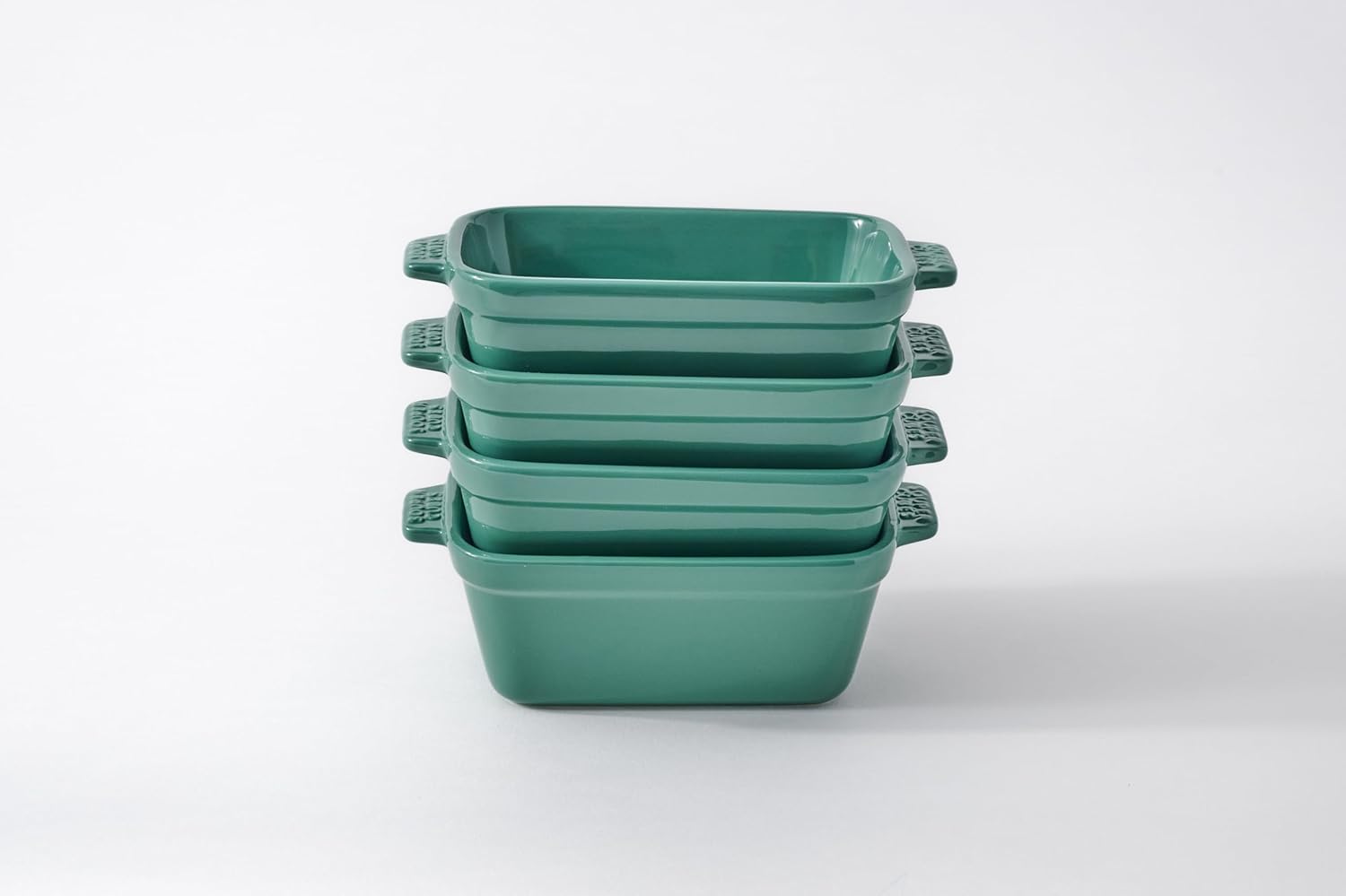 Souper Cubes Stoneware - Small Ceramic 5" x 3" Baking Dish with Silicone Covers, Small Baking Dishes for Oven Perfect for Reheating Single Serve Portions, Set of 4 - Kale